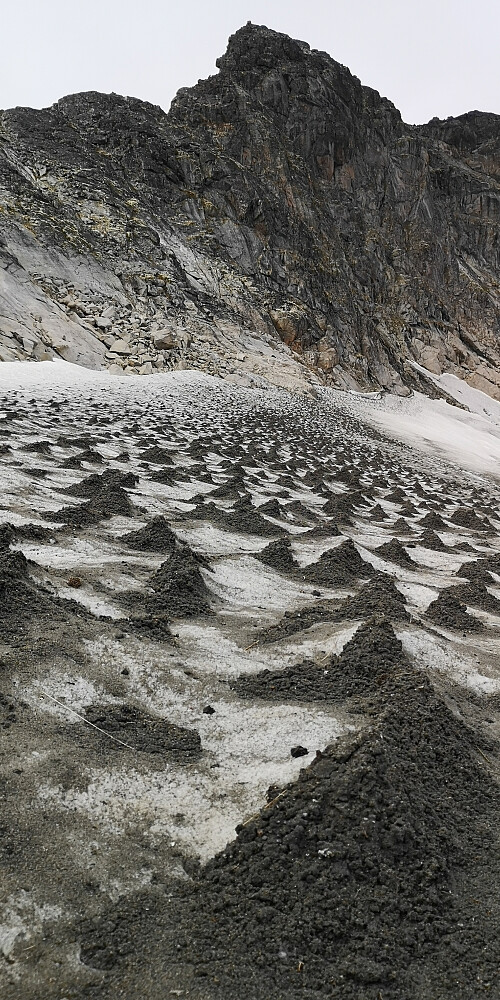Peakbooktur med 14 på tur. Flott vær og spenstig tur med bratt klyving/klatring opp til Sørtoppen på Eggen. Tørre flotte forhold. Mye stein, men det er vi vant med. Krysset breen uten stegjern. Det gikk helt greit.