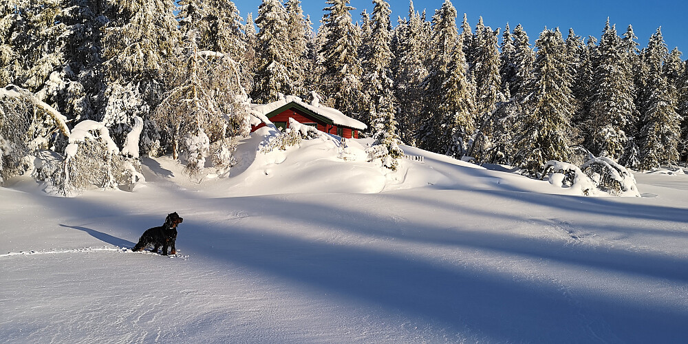 Trugetur alene med Embla. God tråkka trasé opp til Borgenkampen. Derfra måtte jeg selv tråkke spor mot Fisklausen-Veslefisklausen og Bygdeborgen. En nydelig dag. Litt vind på utsatte steder.
