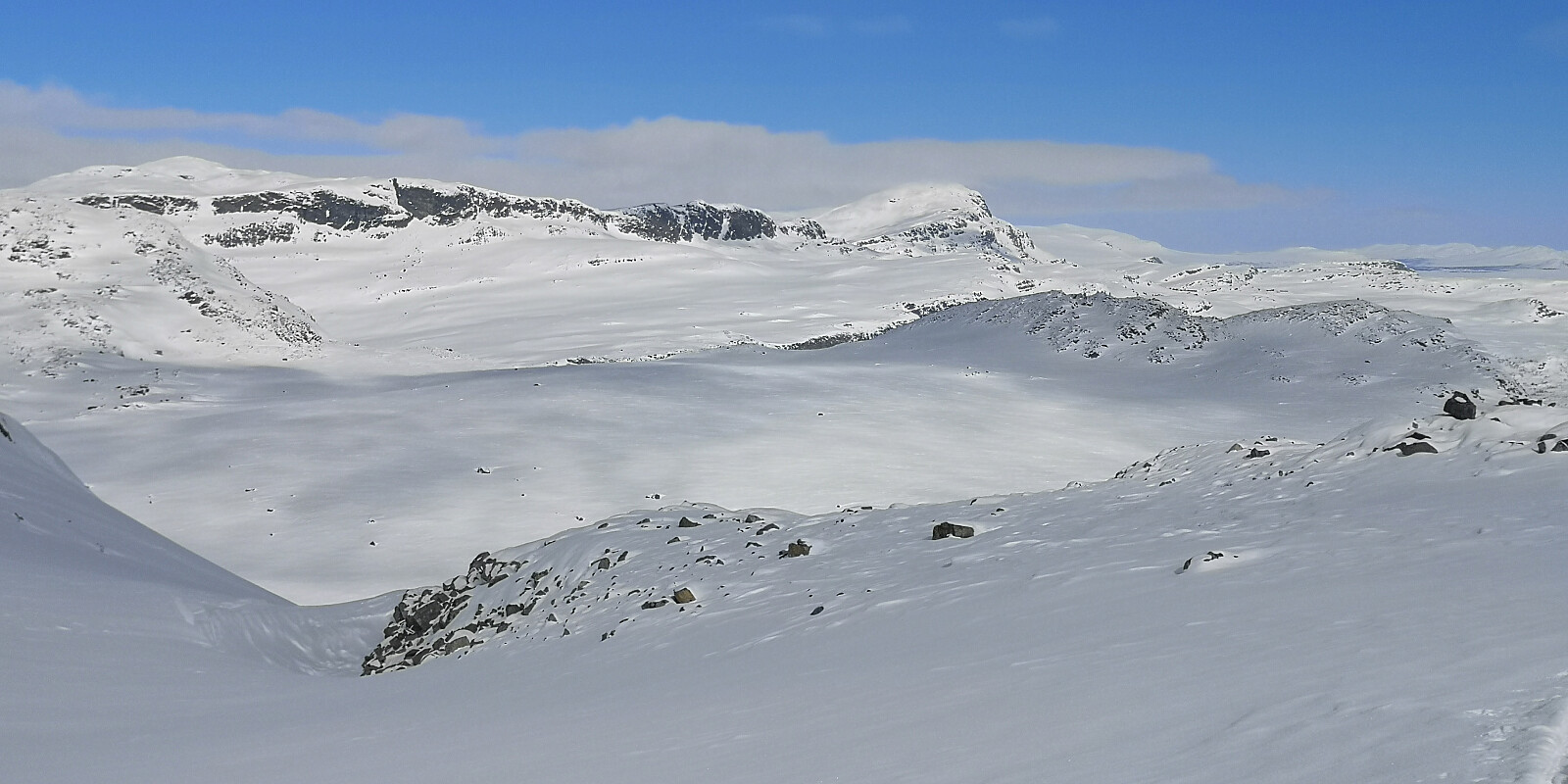 Værmeldingene var gode. Godværet skulle komme ca kl 11, men godværet kom for seint for min del. Fikk ikke med meg noen idag så det ble en tur alene i fjellheimen idag. Jeg gikk jamnt og trutt i gråvær og nærmest skodde oppe i høyden. Jeg så en stripe av blå himmel som lå omtrent ved Rundemellen og Skarvemellen. Derfor var jeg optimistisk at det snart ville bli sol. Valgte feil trasee der jeg bare fulgte skutersporet i mine egne tanker. Gikk derfor mot Mugnestølen og sommerruta. Dette medførte at jeg etterhvert måtte gå opp spor selv i 25cm puddersnø og dette ble en seig økt før jeg endelig møtte på det riktige sporet.