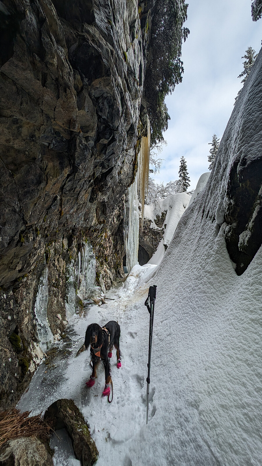 Fin trugetur med Roger og Embla. Litt trasig trase oppover da tydeligvis alle går til fots i traseen. Dette medfører et smalt spor slik at å bruke truger blir litt trasig når snøkantene er høye. På returen gikk vi en annen vei ned der det var en bedre trase. Litt kjedelig retur da man kom ned fra det bratteste partiet. Da kommer man inn på en vei...som er litt lang. Ellers ymse skyforhold på turen. Solen var framme iblant, men også et noe lave skydekket som kom og gikk. Gruva var høydepunktet på turen i tillegg vakre snøforhold oppe ved den store masta.