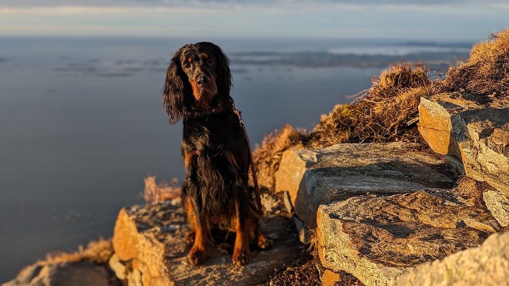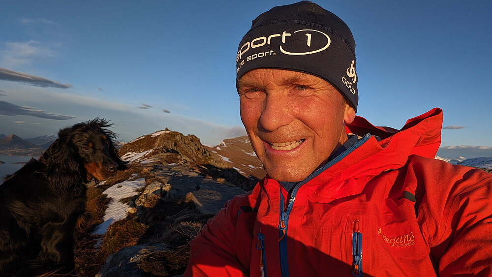 Etter dugnadsarbeid med motorsag...ved,- var det fortsatt overskudd til en tur. Ble alene igjen som så ofte før. Traff vel ca 10 personer på turen. Fikk solnedgangen alene på toppen. Herlig vær og fine forhold. Moro med klaff med været her ute ved havet.