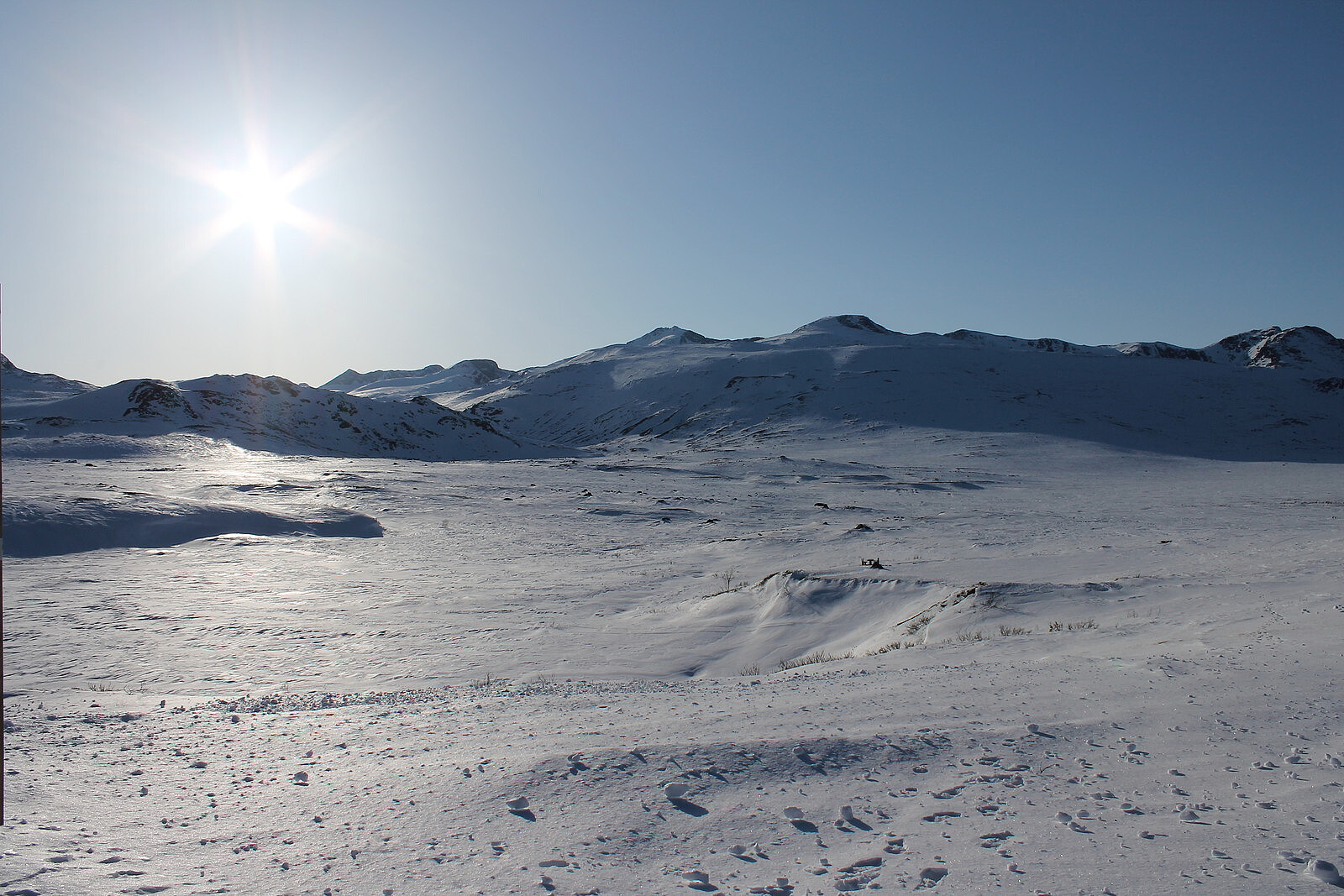 Søndagens rapporter fra Nautgardstinder vitnet om sterk vind...kaldt...og forfrosne neser. Jeg var spent på varselet for mandag...det viste seg å være mye mindre vind og vi var klare for den nyåpnede Valdresflya!