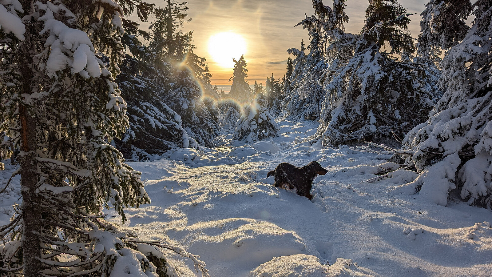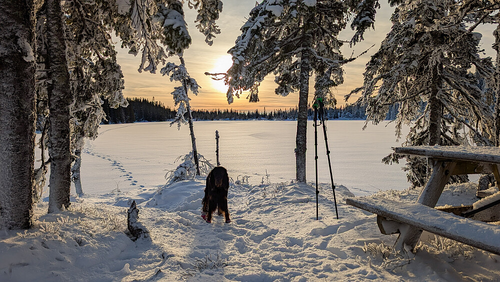 Flott tur alene med Embla idag. Greit uten truger, men litt subbete. Stille og vakkert i skogen idag. Ingen andre her inne idag.