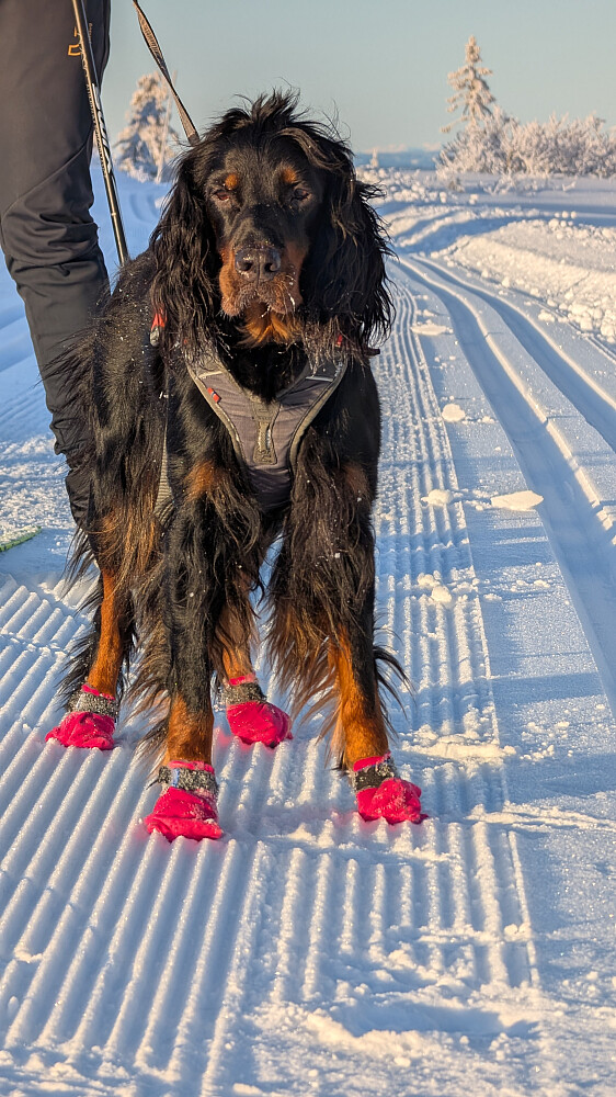 Langrennstur i supre løyper. Bra med folk i skogen idag. Innom Rausteinshytta for en pause. Hadde med truger og gikk oppom Kampen. Tur med kona og Embla.