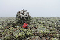 Jeg la av gårde i brukbart tempo, men merket at låra fort ble stive. Huff...dette ville bli et slit. Det ble rimelig bratt opp etterhvert og svetten silte...og fikk negative tanker...som dukker opp i blant spesielt når man ser tåke oppover...Hva er vitsen..? Men...gikk nå på og håpte på noen gylne øyeblikk. Det fikk jeg også, men ved selve varden var det tåke. Ble nok litt skuffet over selve toppen, men ville sikkert fått et annet inntrykk dersom det var sol og blå himmel. Man får ta det som en fin treningstur og glede seg over de øyeblikkene der sola pynter opp landskapet.