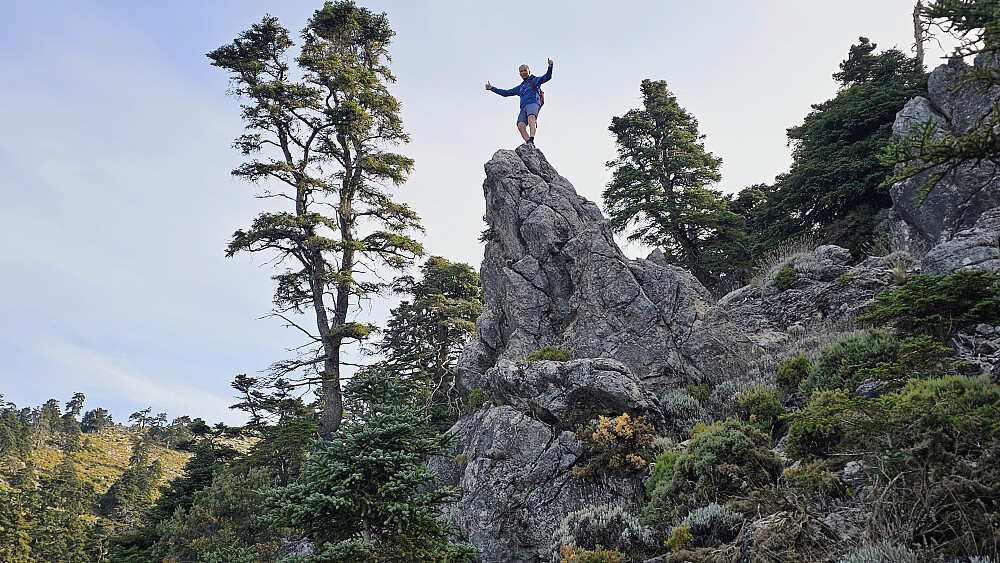 En fantastisk flott tur i et herlig fjellområde. En virkelig høydare med Nils Jørgen idag. Kald vind ved start, men ble herlig temperatur etterhvert. Noe tåke som kom og gikk som skapte virkelig flott trolsk stemning. Gode stier, fantastisk skog med kjempedigre trær...både levende og døde. På vei ned hadde vi sett oss en topp som vi ville gå oppom. En kandidat til en rød nål. Vi gikk nå opptil denne uten sti. En grei avstikker fra hovedstien. Toppen har en pf rett over 100m.