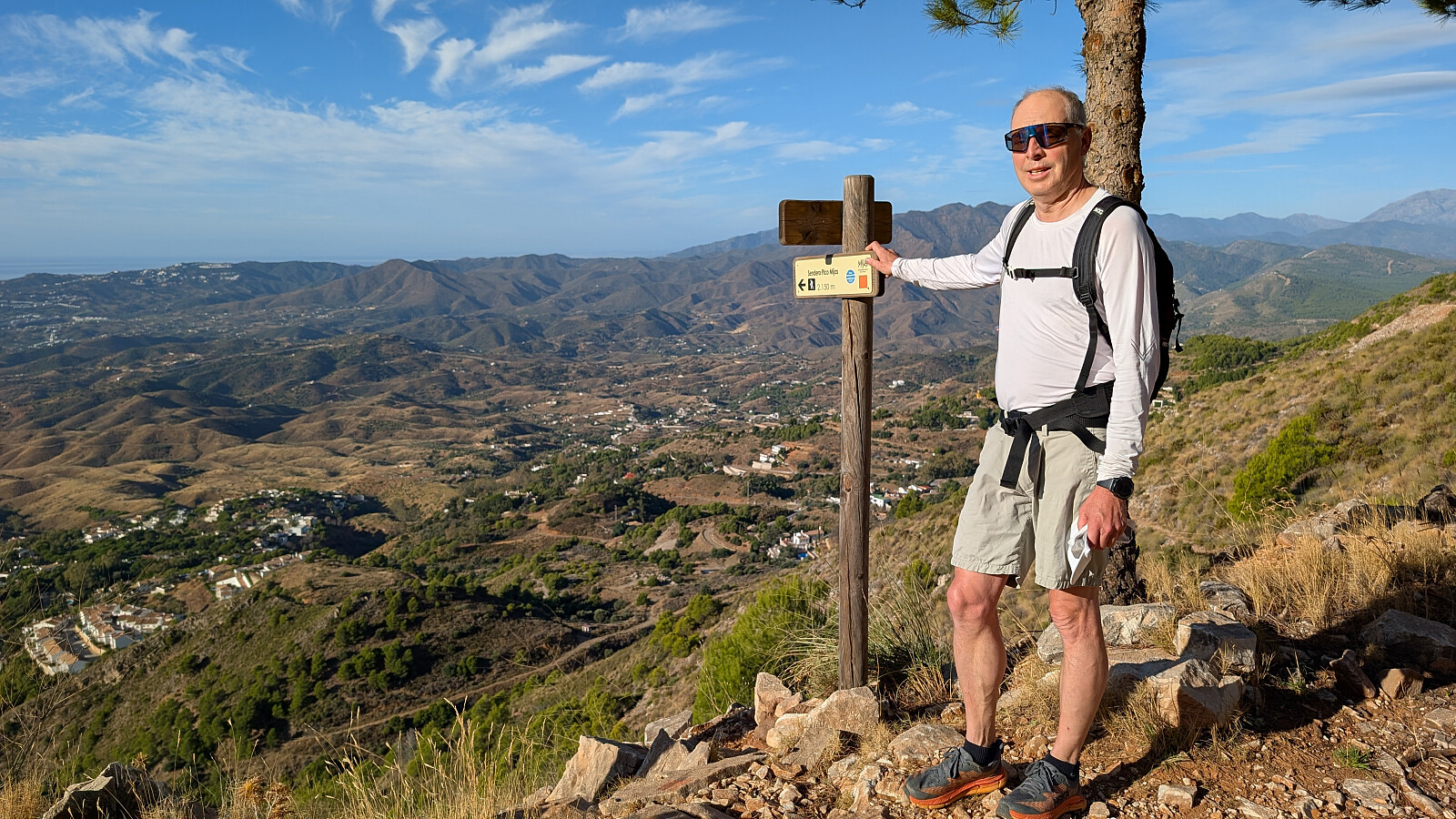 Herlig "sommertur" med Nils Jørgen. En flott tur med en god del høydemetre. Start like ved Mijas på god sti hele veien stort sett. Litt bustete noen plasser. Vi gikk også videre fra Pico de Mijas og har lagt inn to nye topper. Nå var flesteparten av høydemeterne gått, men noen flere ble det videre på turen som nå gikk ned mot Mijas.