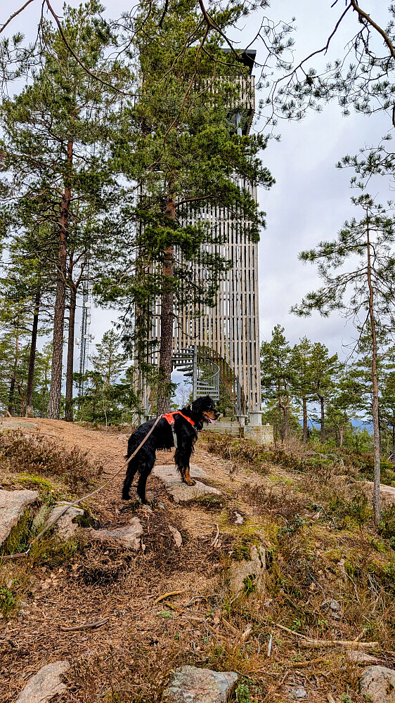 Tur med kona og Embla. Barmark hele veien. Fin liten tur og et veldig flott tårn på toppen. Super utsikt. Mye fin furuskog og berg her oppe.