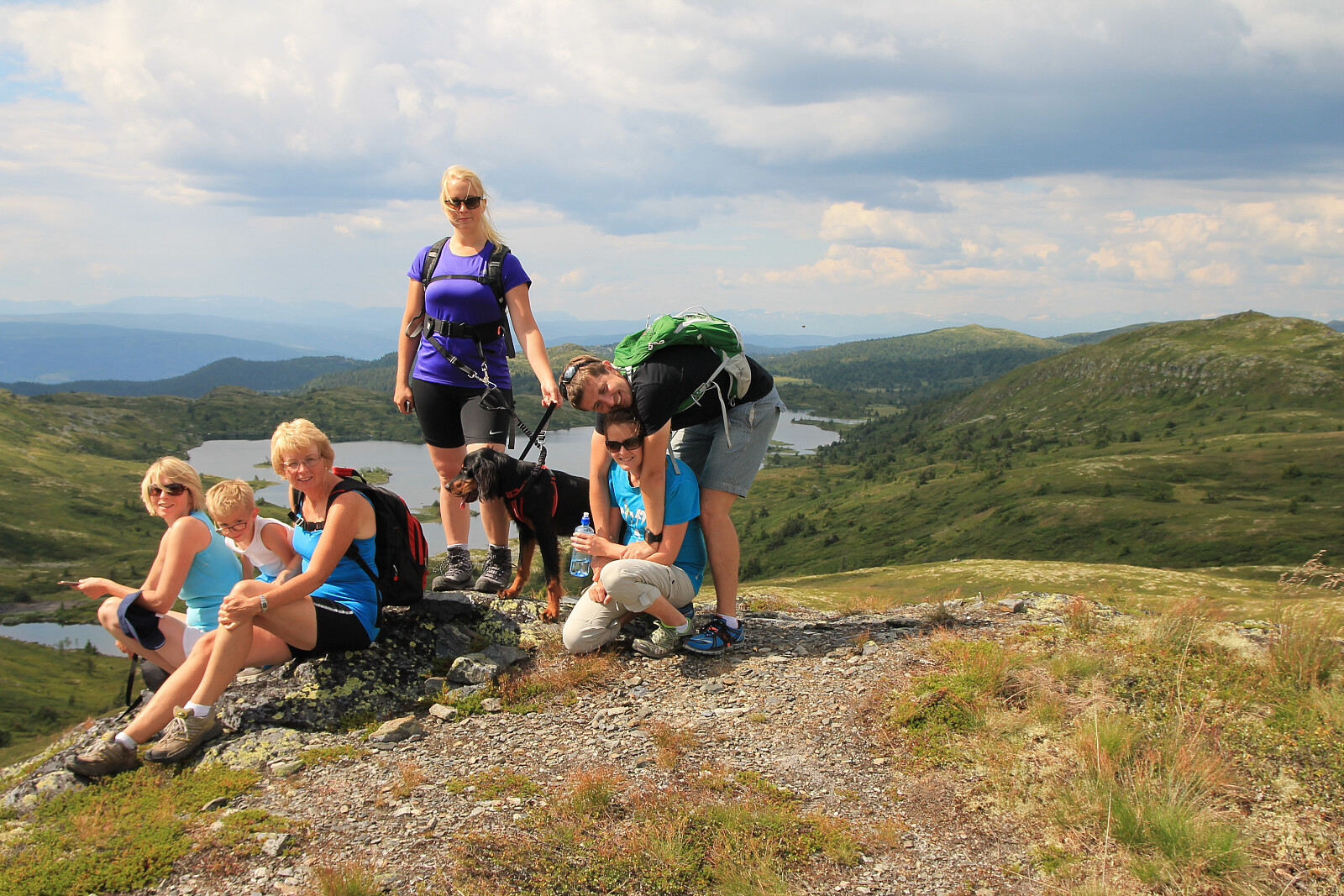Koselig familietur til Bjørgovarden i Valdres i svært varmt sommervær. Varmt for både tobeinte og firbeinte. Tørt i fjellet nå. Gikk fra Kolsrudstølen. Flott passe kort familietur.