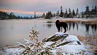 Fin tur over tåka idag. Nydelig, vindstille og ca 3 pluss. Kona var med kun opp til Skinnerlifjellet og gikk så tilbake til bilen. Jeg tok resten av runden alene idag. Litt nyis på vannene som sikkert hadde kommet i løpet av en kjølig natt.