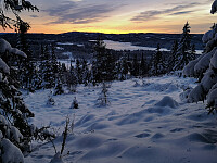 Super skitur med Embla. Fantastisk vær over tåkelokket. Gode spor og topp ski. Utsikt fra nær toppen av Torsæterkampen mot Rausteinshytta og tjernet Fra Rausteinstjernshytta og sørover mot tjernet På Tjuvåsen. Tjuvåskampen til venstre. Utsikt sørover fra "sørryggen" på Tjuvåskampen