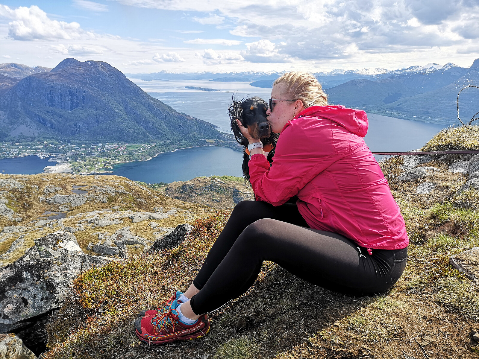 Tur alene med Embla. Med penicillin i kroppen.. hodesmerter og en ellers slakk kropp burde jeg heller sittet i sofaen. Når man tar ferga over fra Mordalsvågen og kjører forbi Sundsbøen...blir all tvil lagt til side. For et vær! For en fantastisk øy. Jeg måtte bare ta meg en tur mens de andre var hos svigerforeldre. Prøvde kroppen litt i trappene. Gikk jamnt uten stopp til toppen uten å ta i for mye. Helt greit. Nær vindstille på toppen og klar flott luft. Tok fotopause og forholdsvis rolig ned. Tørre fine forhold.