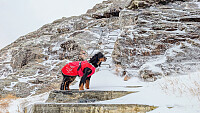 Gikk fra Torsætra. Nesten ikke snø igjen oppover den bratte lia. Greit uten brodder opp idag, men brukte brodder ned fra Rausteinshytta...Jens Hansens sti. De var gode å ha nedover. Fint lys oppe på ryggen. Ca 15 cm snø igjen på de høyeste partiene. Tur alene med Embla.