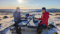 Det ble en flott tur her oppe idag. Vi gikk deler av 7-fjellsturen så det ble en rimelig bra runde på oss. Nydelig,- nesten vindstille vær. 11 minus ved start. Vi hadde matpause i sola oppe på Hitfjellet. Litt nysnø lå i stiene...ca 4-5 cm og for det meste perfekte forhold. Litt isete noen plasser ned fra Hitfjellet. Kun to personer å se på runden vår idag. Takker NJK500 (Nils-Jørgen Kristiansen) og Terese for en flott tur.