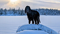 Fin tur alene med Embla. Gråvær og tåkete nede ved Torsætra, men rimelig flott oppe i høyden...som det ofte er. Ca 1 minus, 5-15 cm nysnø. Herlig i skogen idag. Glatt ned bratta så der burde jeg hatt brodder.