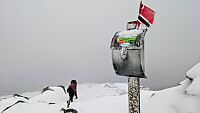 Skikkelig møkkavær her i vest mens det er bedre i øst nå. Vel,- kan ikke sitte å glo når de nødvendige gjøremål i huset her oppe på Otrøya er fikset. Fikk jo ingen med meg i dette været, snødrev, hagl, regn og opp mot sterk kuling i perioder. Måtte huke meg ned og klarte stedvis ikke å gå rett. et var nesten så jeg ble engstelig for Embla, men hun er lav og har 4wd. Da vi kom opp til metalltrappa der det er bratteste,- fikset Embla dette greit. Det var faktisk en god del snø som gjorde forholdene litt enklere for henne. Hun står på og klager aldri. Det ble ikke lange stoppen på toppen idag. På vei ned økte vinden enda mer enn på toppen. Vi kom oss etterhvert greit ned på snillere terreng nede ved Bløvatnet. Greit videre ned til parkeringsplassen. En svært frisk og >>>