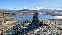 Tur nr. 4 idag. Økende vind, men flott vær. Fin tur til en flott topp her vest for Skåbu. Topp med sikteskive og fabelaktig utsikt. En suveren tur for barnefamilier, men også for to "toppnerder" som oss.