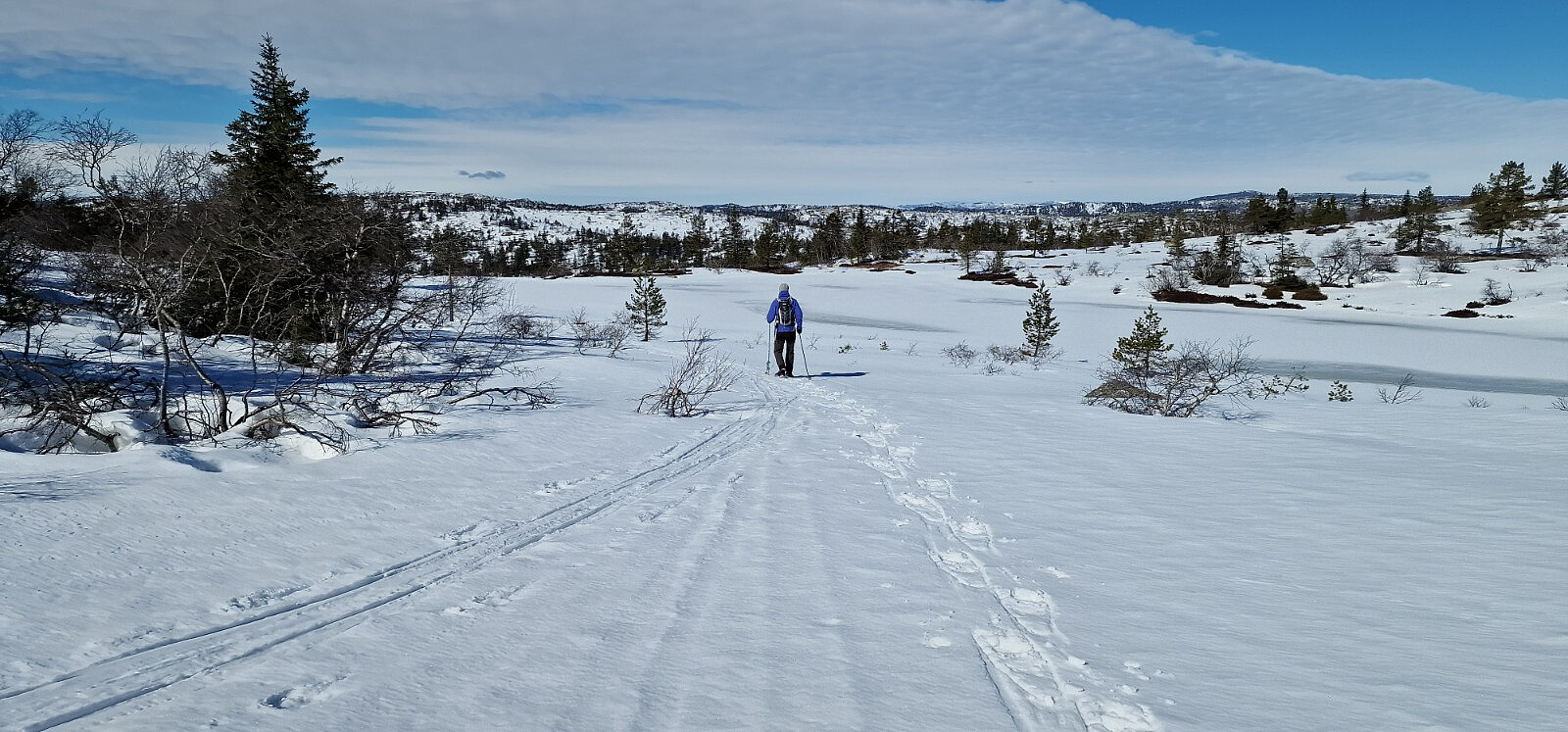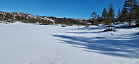 Starta fra Myrland og gikk runden som heter flyløypa. Tåke i dalen, men kom etterhvert over tåka og fikk strålende sol i høyden.