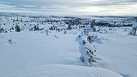 Fin tur til Blåfjell fra parkeringen på Kleven. Det var snøvær og vi tråkket opp spor til toppen. Stemningsfull vintertur opp til hytta på toppen. Her fyrte vi opp i ovnen og stekte sveler. Liv og Kristen var med oss (Jan og Berit, BeHe)