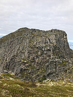 Endelig var dagen kommet for å prøve seg på traversen mellom Stabben og Inderbergssalen. Uvanlig for meg å starte på tur sammen med så mange. Det ble flere trivelige bekjentskaper, itillegg til en del gamle bekjente. Var faktisk tre andre Peakbookere med på turen. Foruten oss 27 stk på KNT-tur var det en gruppe på 12 fra Aure il. De kom seg avgårde en halvtime før oss slik at det ikke ble noe ekstra venting på de vanskelige punktene. Tok lang nok tid med så mange som vi var. Det ble lagt ut tau noen steder som hjelp for dem som var usikre. Luftig var, sleipt også også pga regn de siste dagene. På det siste vanskelige punktet skjedde det en nestenulykke. Var ikke trivelig å sitte på toppen og høre det rase stein når det var folk i bratta.Heldigvis ble >>>