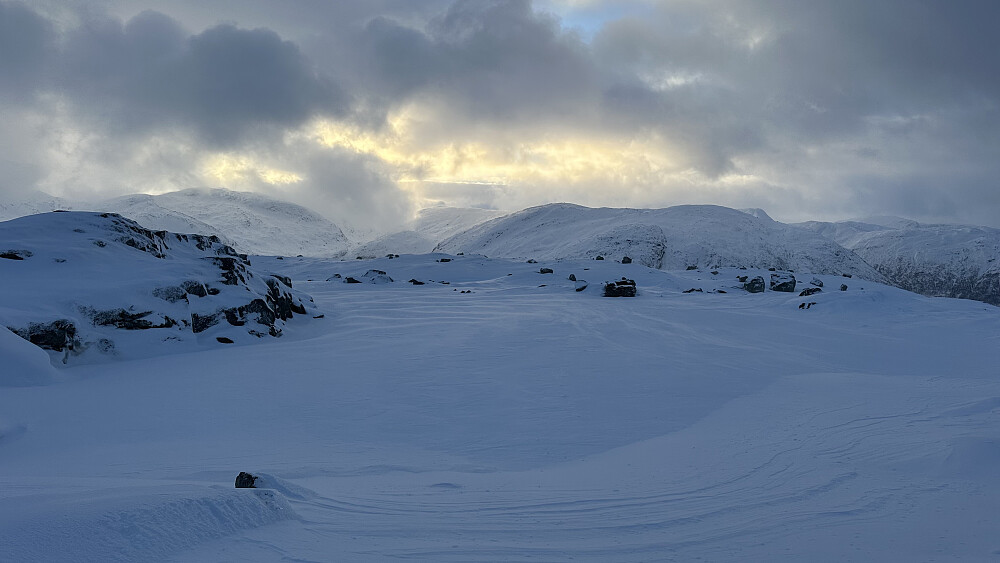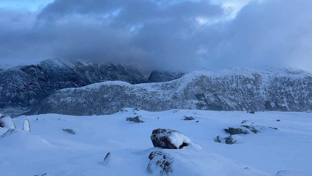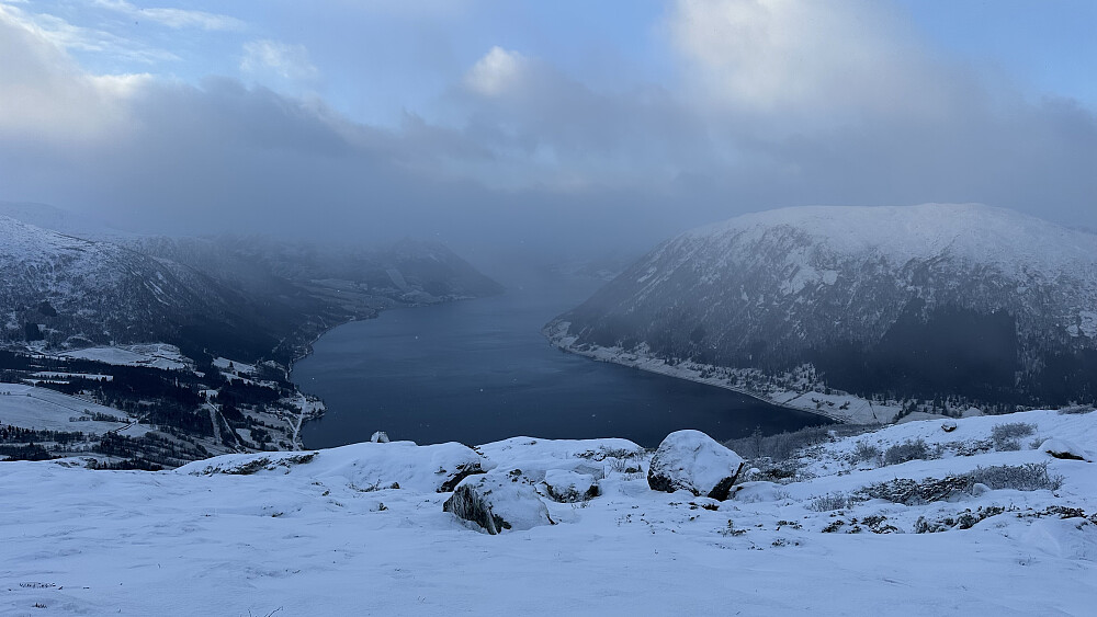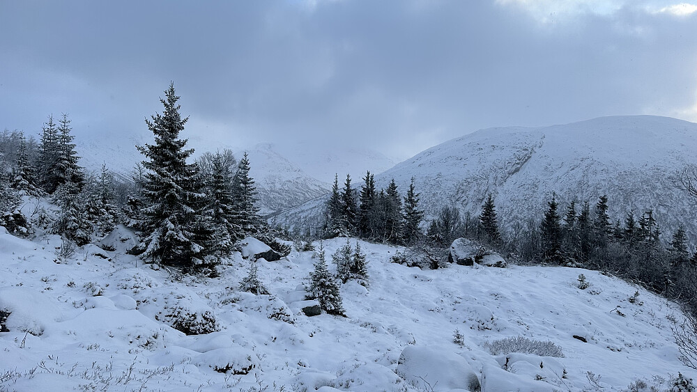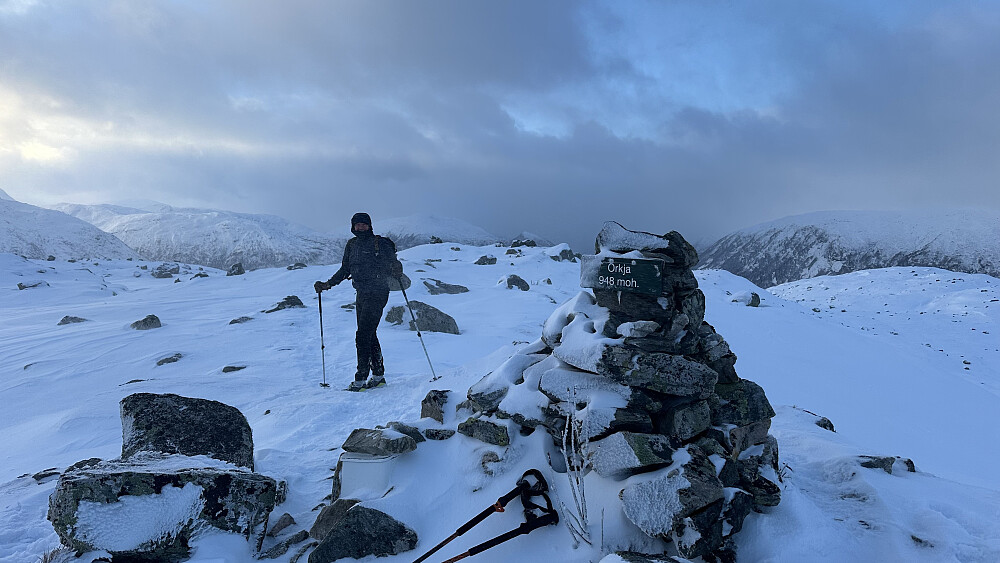Tur på Orkja til fots ilag med Inge. Komt noko nysnø på toppen, men forlite snø til ski på Olahansfjellet.