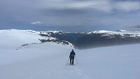Inge var lysten på tur til Sørøst for Jostebotnen. Vurderte fjellski, men snøgrensa hadde trekt seg langt opp! Så truger var snaut å hekte på sekken. Det var meldt kraftig vind ifrå 18 -25 m/s utover dagen. Ville ta nokre konkrete målinger på kor fort veret skifter i dette fantastiske ville riket. Ein konkret argumentasjon mot gondolplaner inn i Jostedalsbreen Nasjonalpark ifrå Kjøsnesfjorden i Jølster. Utbyggerane har ikkje teke seg bryet med vindmålinger i eit så hardført villmarksrike!