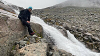Dette er ein tur som eg kan like som aller best! Naturen er rå og mektig! Middagsnibba 1443 ligg lite inne med info om rute opp! Sett vekk ifrå at ein kan nå den fint på ski via Hanekammen 1651 moh. Ekstra kjekt då å finure terrenget som tilsynelatande ser knotete ut til fots ifrå nye kanter. Skodda låg trolsk idag med yr på toppane! Det la likevel ingen hindring på utforskningstrangen og ein eventuell retur. Nydelige haustfargar og fantastisk å studere breane & brefalla som Melkevollbreen & Briksdalsbreen/Jostedalsbreen. Ingen ting anna å seie enn stor fascinasjon for naturen i dette riket!