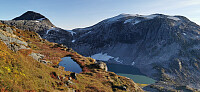 Ein tur med melisdryss på fjelltoppane! Skodda veksla heldigvis, så det var mulig å nyte litt av den flotte utsikta over dei andre fjella i området. Ellers så er det alltid litt knotete å bevege seg i den våte nysnøen som ligg i steinura. Fort å trakke feil! Nysnøen forsvant ifrå toppane med den varme fønvinden neste dag. Var der til rett tid, med dei fantastisk flotte haustfargane.