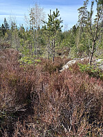 Ble veldig utydelig sti når man kom opp på «heia» med svært høy lyng. Bestemte meg for å gå ned igjen over Størsrudåsen. Veldig fint der, men så ikke at det gikk av noen sti. Sto bare en sti på Norgeskart. Kom derfor for langt vest og måtte bushe oss tilbake østover til vi kom på riktig sti. Bortsett fra det veldig fin tur.