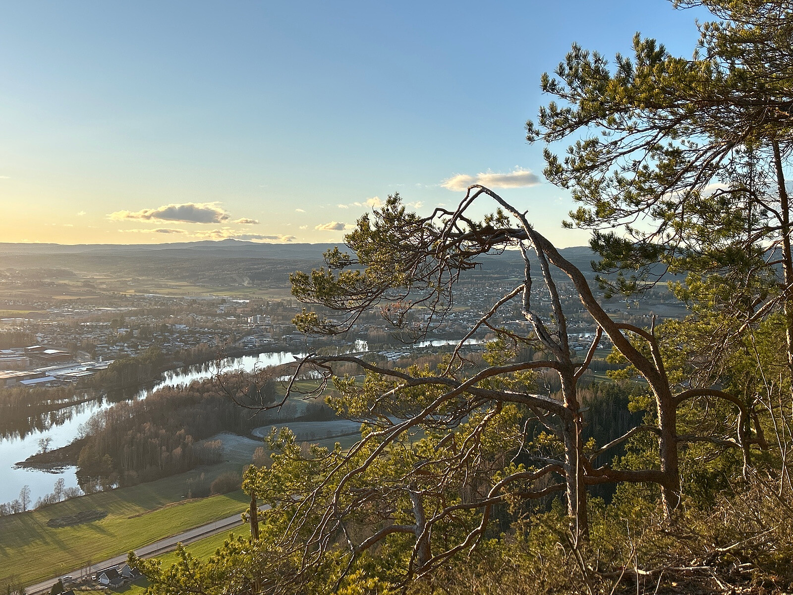 På tide å skifte til vinterdekk. Det gjorde jeg i Hokksund. Det er jo trim nok i seg selv, men tok meg en kort tur i skogen sør for Hokksund etterpå. Utsikten fra Hagaås i lav høstsol var absolutt en god grunn til å ta turen.