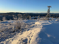 Lysbehandling forhindrer vinterdepresjoner. Hvit snø, kaldt og blå himmel. Kan ikke bli bedre. Gikk til fots, til og med på Hoggtjern.