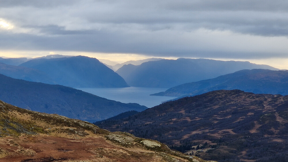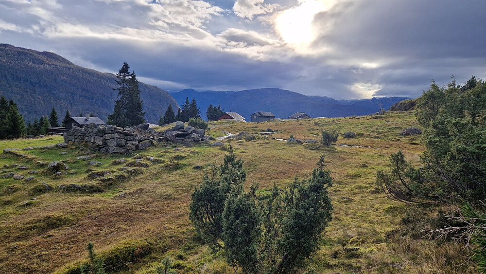 Køyrde inn Njøsadalen, ein smal, og innimellom bratt veg. Parkerte på planert plass ved vegskilet. Gikk over brua og vidare på veg fram til stølen Skagasete. Fin støl. Skilta mot m.a. Lusaskar. God sti i starten, og nokre eldre raude merke viste veg. I ein liten botn var det to stiar, så her måtte ein følgje med. Eit lite raudt merke viste at her skulle eg dreia mot venstre, for å komme meir opp på rygg. Fint å gå innover, og etter kvart opna utsikta seg med mykje å sjå rundt om det heile. Dalar, toppar, myrområde, Sognefjorden, sol og regnbyger. Skiftande lys. Frå toppen var det spesielt fint ut fjorden, og mot Skriki. Retur same veg. Oppe på fjellet er det på lag sti, men over myrområda er det ikkje sti. God hjelp av appen for å unngå haugar, og dei største myrane. Passeleg lang tur no seinhaustes.