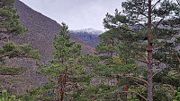 Turen inneheld gode ruteval og dårlige, eller rettare, litt surr på returen. Då eg kryssa elva, og såg opp, der det var omtala oppgang, så tenkte eg, at her er det både veldig bratt og mykje vegetasjon. Så eg gikk for plan min etter å ha studert kart-kvotar. Lenger inn på grusveg, og så inn i terreng ved ein litt open plass. Veldig tettpakka terreng. Så tolmodigheit og prøve å finne opne glenner. Plutseleg var eg på ATV-veg, og følgde den. Der den slutta, tok eg litt til høgre, så rett opp. Kom til ein skrent, leita litt, og så noko til venstre. Og så stod eg under bratte berg. Fann ei lita skår som eg klora meg opp i. Vidare kjapt bort på toppen. Litt tid til utsyn, og så retur. Valde litt runding under berget, for så å sikte meg nedatt til ATV-vegen. Då den svinga >>>