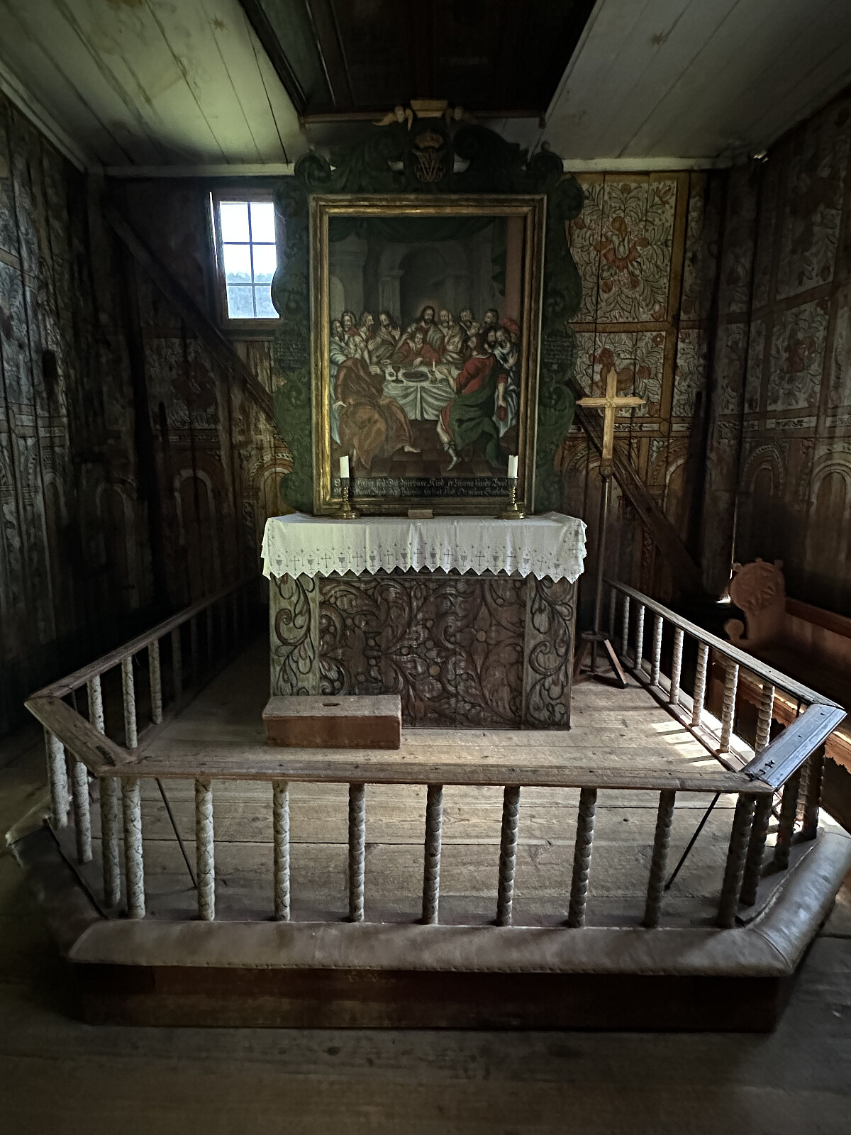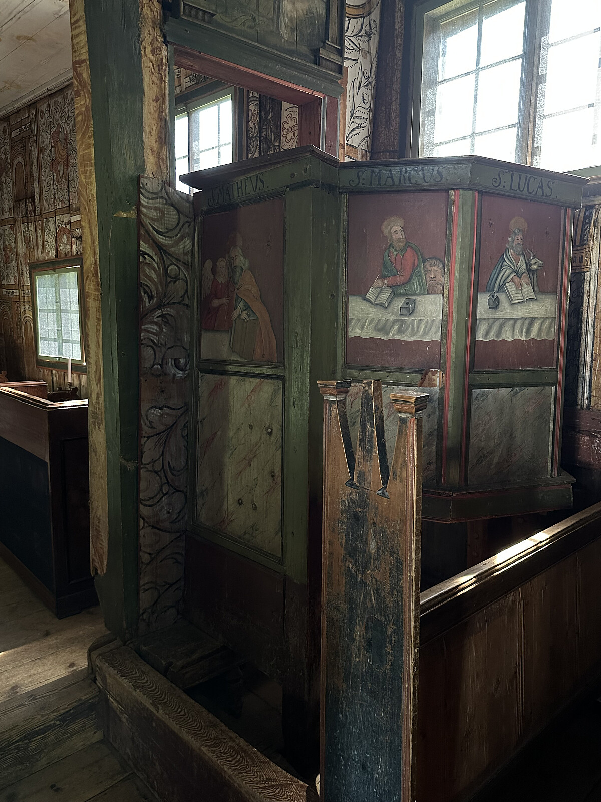 Vinduene er sekundære. Opprinnelig har kirken kun hatt små, cirka 6—7 cm i diameter store, runde glugger, høyt plasserte på veggene for lys innvendig.