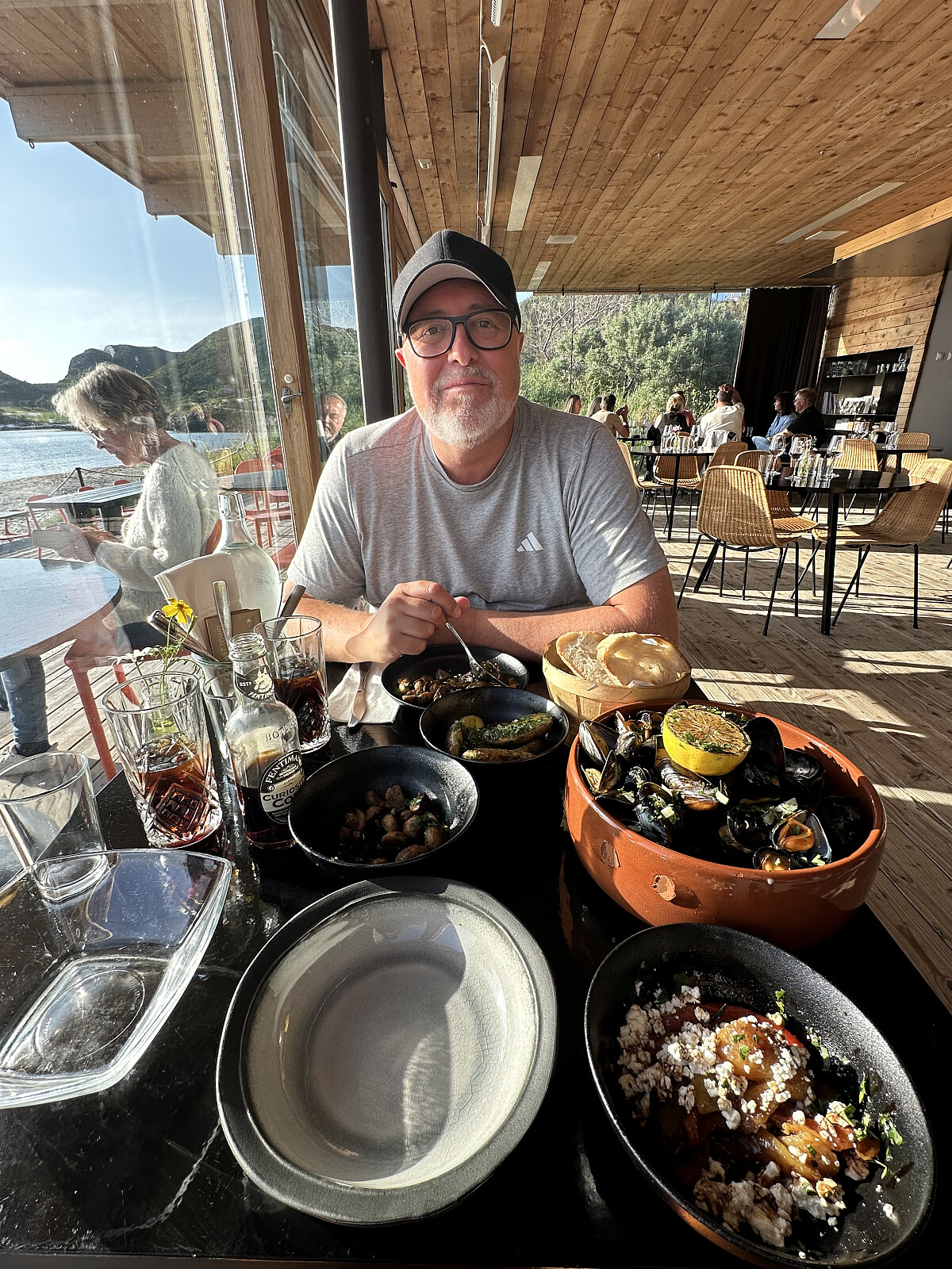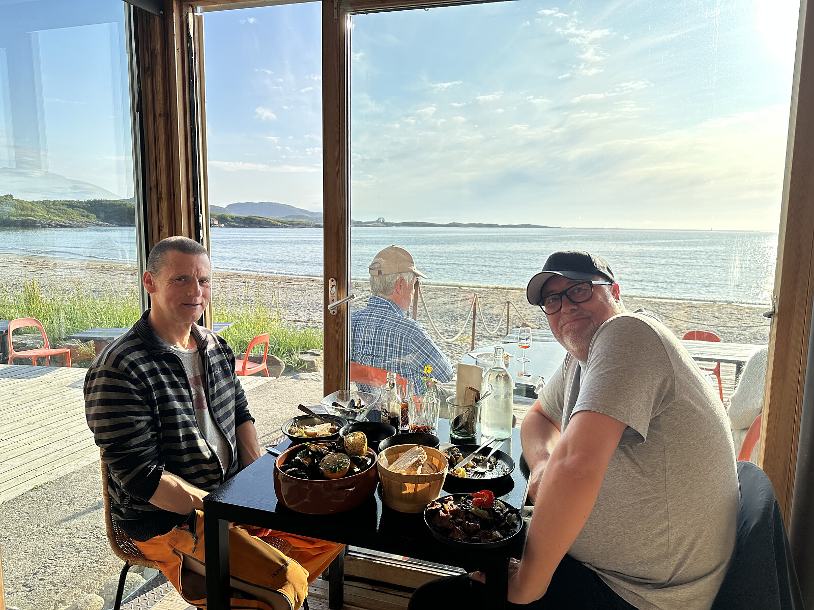 Besøk til den utrolig fine Hosnasanden. Roadtrip med Jan M. Parkerte ved Stokkøya sjøsenter og ruslet ned til den populære Strandbaren. Her spiste vi deilig mat. Jeg tok 1 kg med blåskjell, nam nam, og Jan tok noe annet godt :-) Stedet kan varmt anbefales, i tillegg var det en varm fin sommerdag :-)