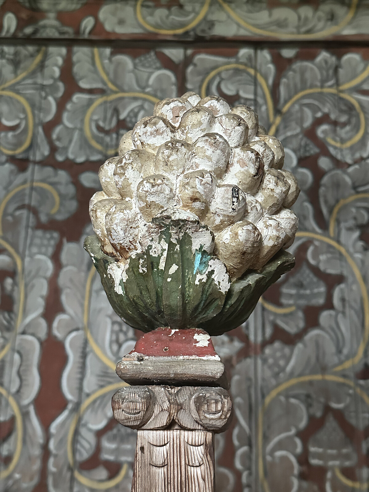 Interiøret er preget av stilen etter reformasjonen. Veggene og himling er malt med dekorasjoner (bladranker) i 1600-talls stil. Dekorasjonene fremstiller scener fra Jesus liv. Skipet >>>