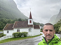 Byggverket er i tre og har 420 plasser. Den står like ved siden av Kvernes stavkirke.