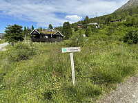 Parkerte ved Brunstad parkering. Herfra på god grusvei i ca 2 km, nesten helt frem til hytta. Der hvor grusveien ender går man over en elv / bekk på trebru, og den er ordentlig fin. Den har en flott utskjæring på seg :-) Etter bruen er det bare noen hundre m opp en kneik før man her fremme ved den lille men trivelige DNT hytta.