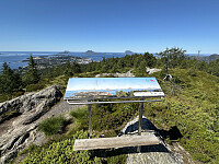 Kjørte til Brandsøya rett øst for Florø, og parkerte på Sundet P-plass. Dette tror jeg var en av de aller varmeste dagene i året. Kokende varmt å gå opp til toppen av Solheimfjellet. Gikk den vanlige fine asfaltveien helt opp sammen med mange andre denne dagen. På toppen var det flott utsikt i alle retninger, sittebenker og en stor mast.