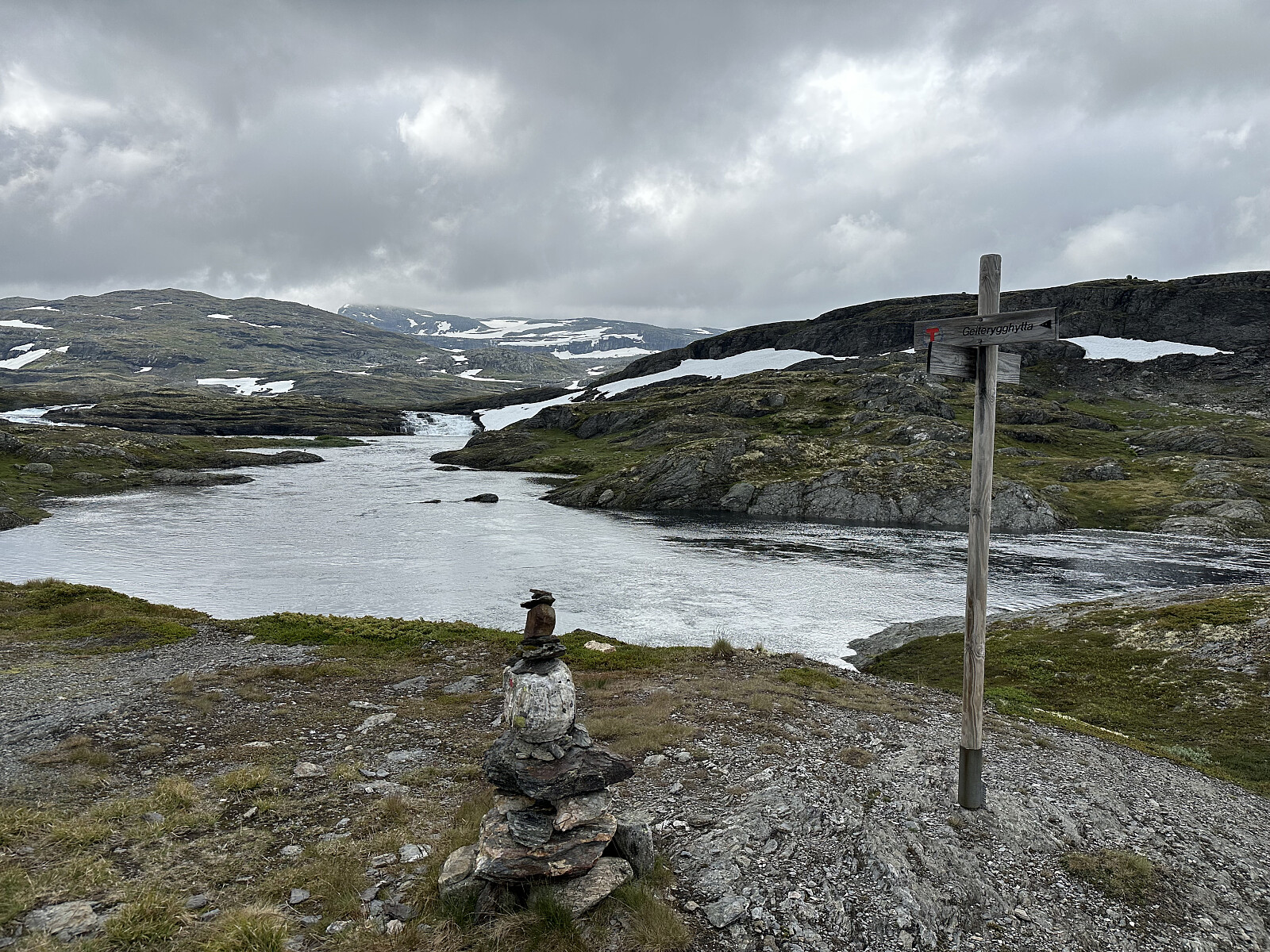 Parkerte ved Geiteryggtunnellen vestre P-plass. Ikke så altfor store plassen, men allikevel plass til ca 10-15 biler. Herfra på god kjerrevei ca 3 km til hytta. Nesten helt i starten av turen så passerer man en rekke flotte stryk / fossefall som kommer ut fra Vasshellertjørnane sin nordende. Geiterygghytta er en fin betjent hytte som ligger i østenden av Geiterygghytta.