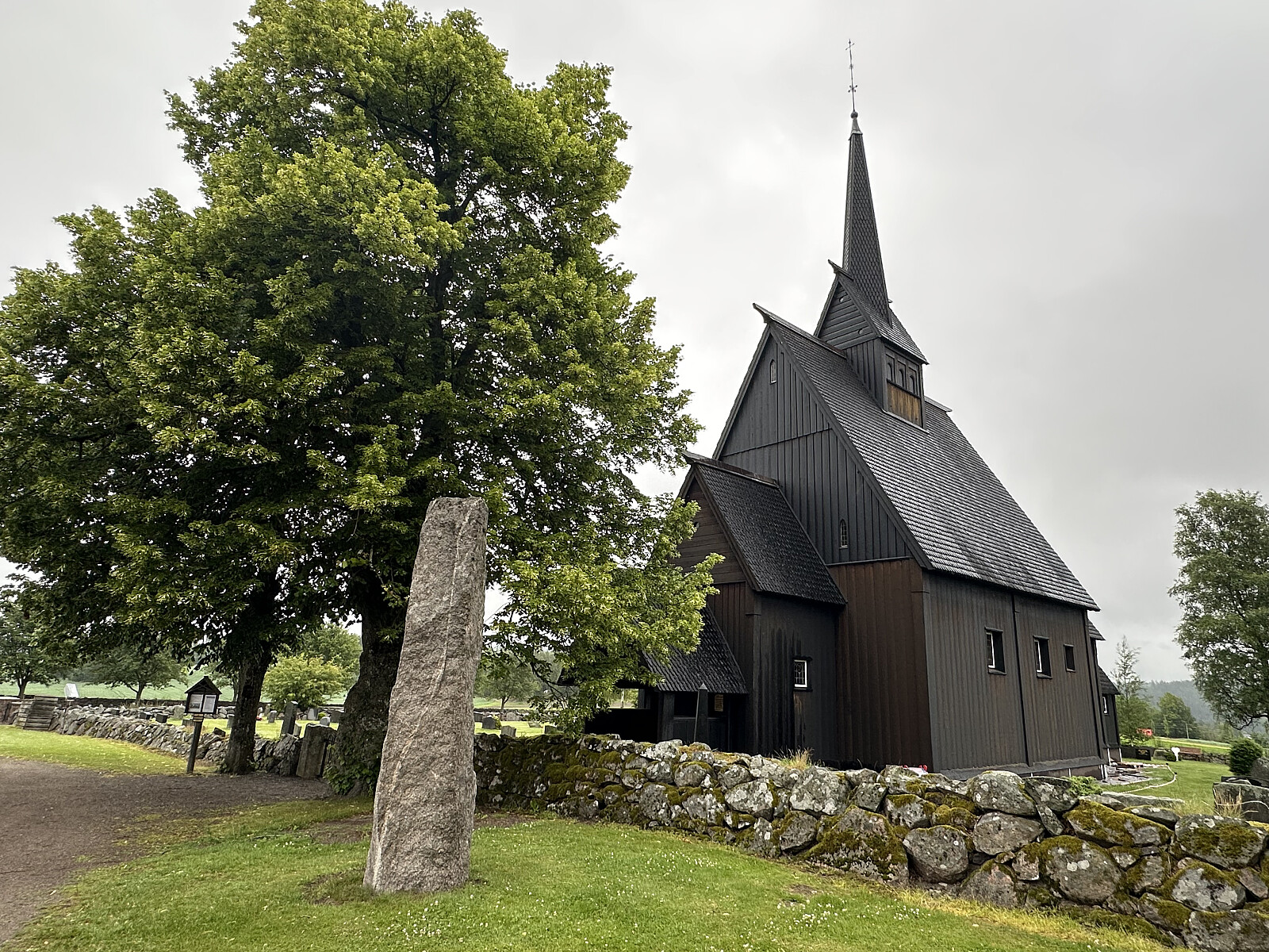 Det er ikke kirkegård ved kirken, men det er ytret ønske fra kommunens side om gravplass i nærheten.