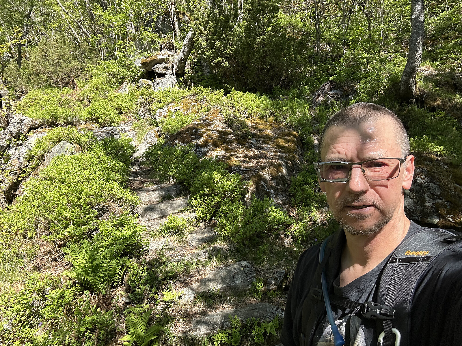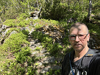 Parkerte ved et informasjonsskilt ved det lille stedet Tenne, som ligger innerst i Indrefjorden. Herfra på god umerket, men bratt sti, forbi stedet Fossesete og opp til vannet Vatnavatni på 809 moh. Sydøst utløpet steingås før den siste slake oppoverbakken til den ubetjente DNT hytta Vatnane. Hytte er liten og med bare 6 sengeplasser. Den ligger på et fint «tun» sammen med 7 andre små hytter. Fin utsikt og godt vær i dag.