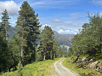 Et par km vest om stedet Svelgen, kommer man til et bebygd område. Parkerte ved en snuplass innerst ved Tiurvegen. Herfra på god grusvei mesteparten av turen. Kun de siste 600 m var på sti. Hytta ligger litt opp i høyden med utsikt over Nordgreen og Svelgen.