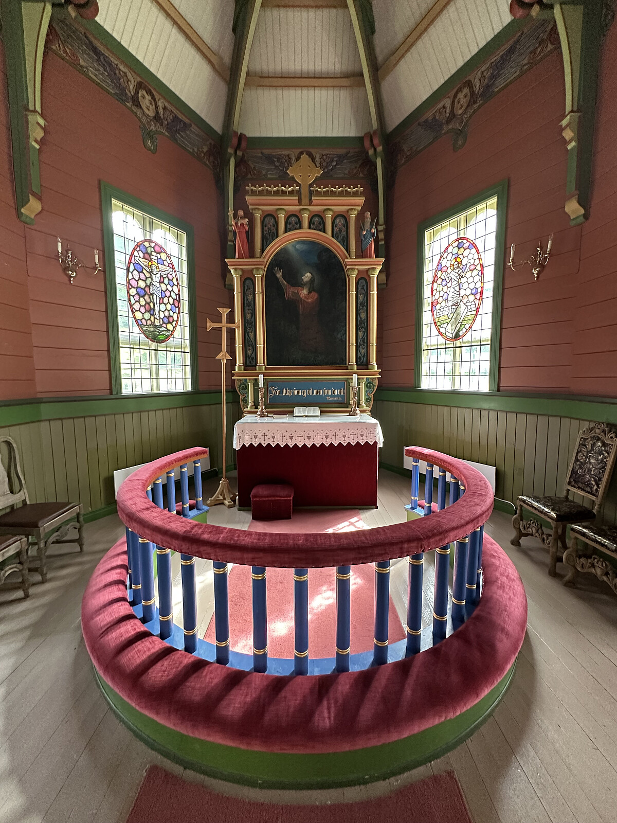 Da kirken i Hornindal stod ferdig i 1856, ble det satt opp et forgylt trekors på alteret i påvente av altertavle. 75 år senere var det ennå ikke komme altertavle >>>