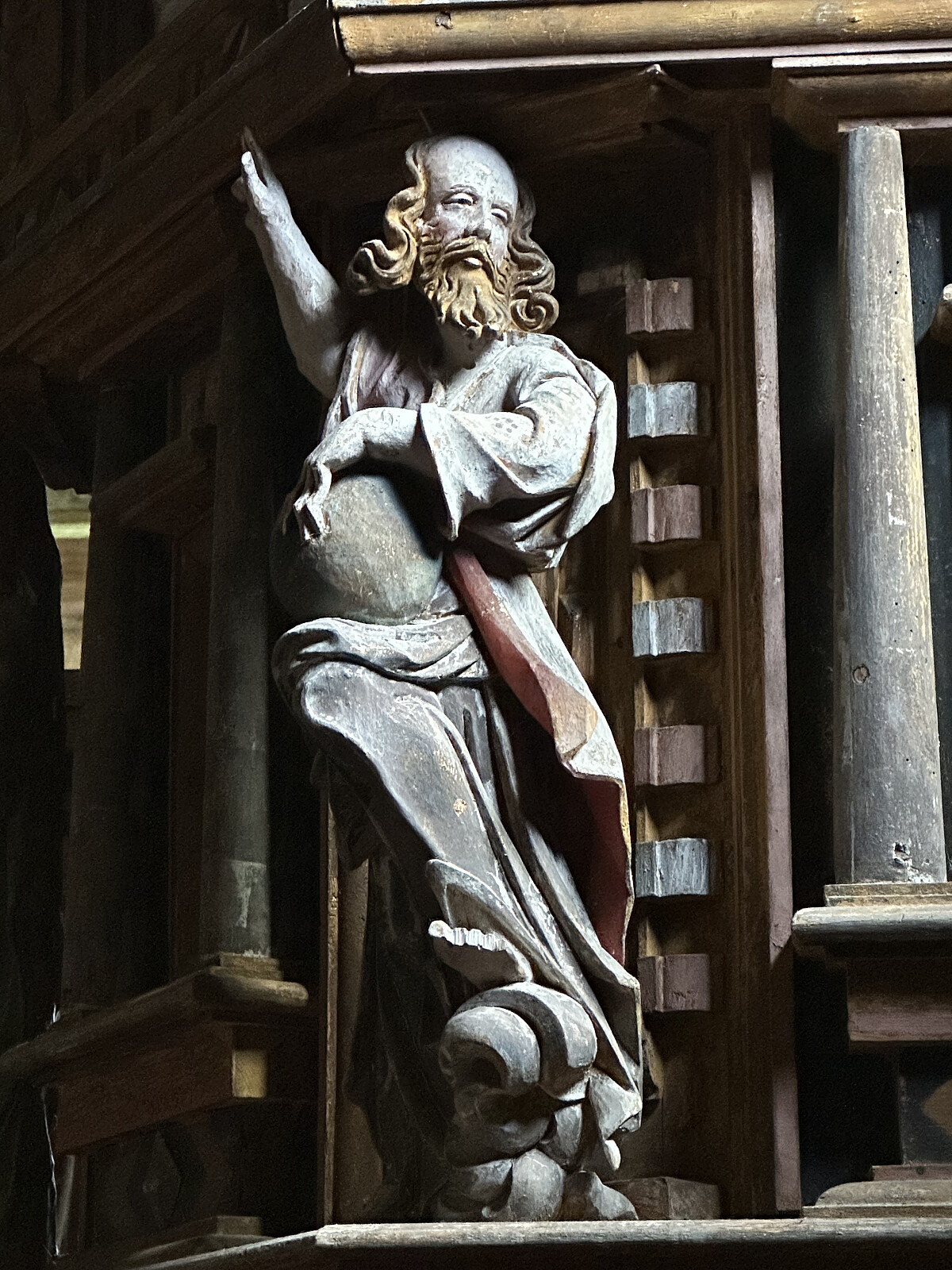 Interiøret er preget av stilen etter reformasjonen. Veggene og himling er malt med dekorasjoner (bladranker) i 1600-talls stil. Dekorasjonene fremstiller scener fra Jesus liv. Skipet >>>