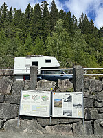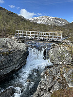 Tok av ved Hafslo, og kjørte langs østsiden av Veitastrondsvatnet. Her var det smale veier og småekkelt å kjøre. Veldig fint siste stykket fra Veitastrond og til Tungestølen turisthytte. Det virket ikke som om sesongen var helt igang enda, men traff på innehaveren, og han fortalte morsomme historier om stedet. En fantastisk plass, og en av de mere spesielle DNT hyttene i landet.