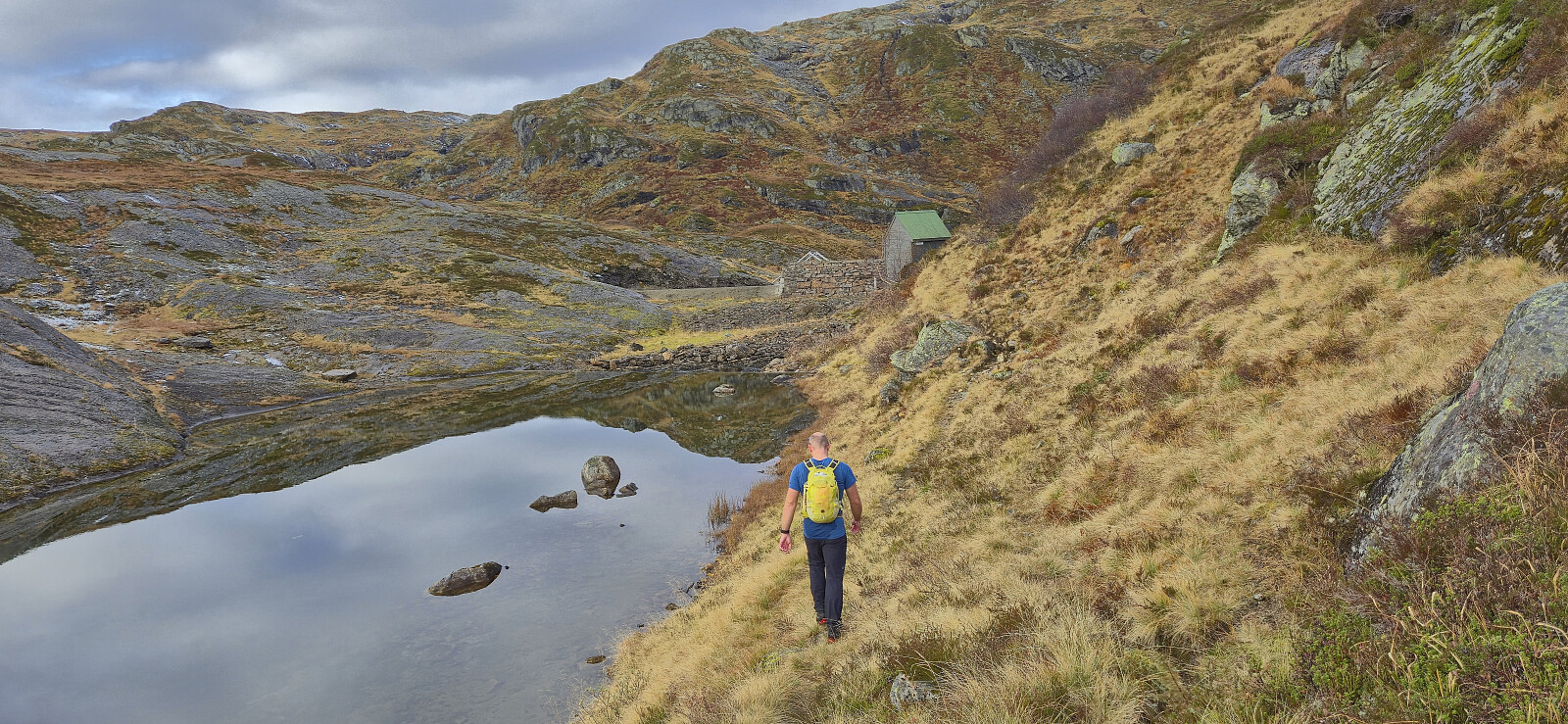 Jeg valgte å legge returen på østsiden av Songrøvatnet da dette så litt kortere ut samtidig som terrenget var noe lettere. Kunne blant annet følge et sauetråkk i lien ned mot vannet. På GPS-sporet ser det ut som jeg har krysset vannet. Her må det påpekes at det er kartet som er feil. Jeg gikk ikke uti vannet, men holdt vannkanten. Kastet noen flate steiner og finpusset teknikken litt.