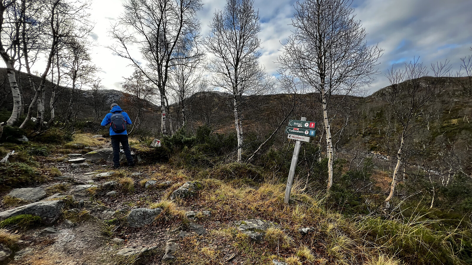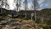 Fulgte den gode stien innover mot Kjellandbu. Tok av fra denne ved Hardingaskardet og fulgte stien mot Songrø. Lurer på om dette er en gammel DNT-sti siden den er merket med "T".