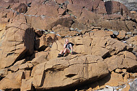 Vi gikk rolig innover Koldedalen over de glatte steinene som i seg selv kan være en liten utfordring under disse forholdene. Vi fulgte vardene så godt vi kunne og stod etter noen timer nedenfor klyvepartiet oppover mot Falketind. Nå måtte vi >>>