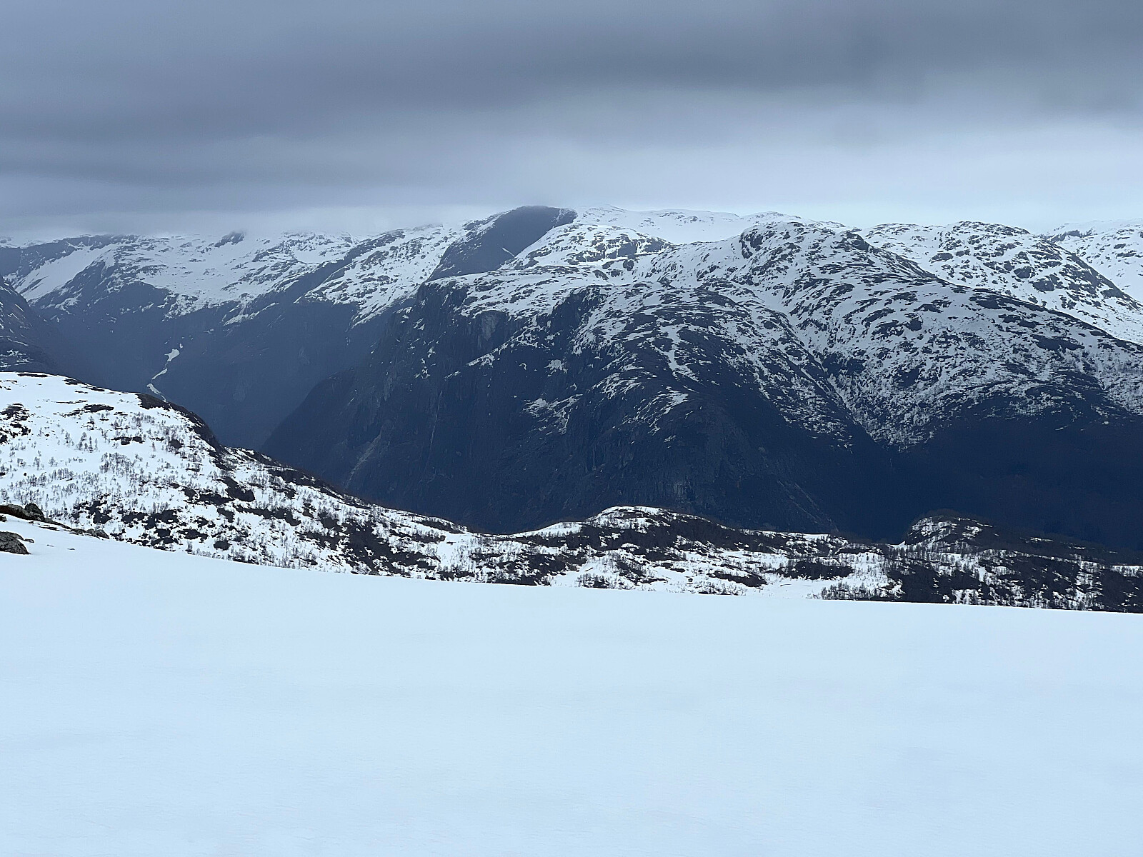 På vei til hytten for påskeferie stoppet jeg ved Løn, på nordsiden av Oppheimsvatnet for å ta en luftetur over Åsknappen og Valafjellet.Parkerte utenfor en løe og fulgte stien oppover i lien. Bratt og fint i starten. Stien dreier etter hvert østover. Her var terrenget ganske rotete med en del falne trær. Det var dyvått over alt, mye råtten snø i de åpne partiene og myrvannet var iskaldt etter snøsmeltingen. Trodde jeg fulgte stien, men viste seg at jeg hadde kommet inn på et hjortetråkk. Uansett gikk det i riktig retning. Skrådde etter hvert oppover mot Åsknappen i fint, åpent og lettgått terreng. Snøen var sammenhengende på toppen. En liten åskam like nord for trigpunktet gjør det veldig enkelt å se hva som er det høyeste punktet her oppe. Tok meg nedover Åsbrekkene >>>
